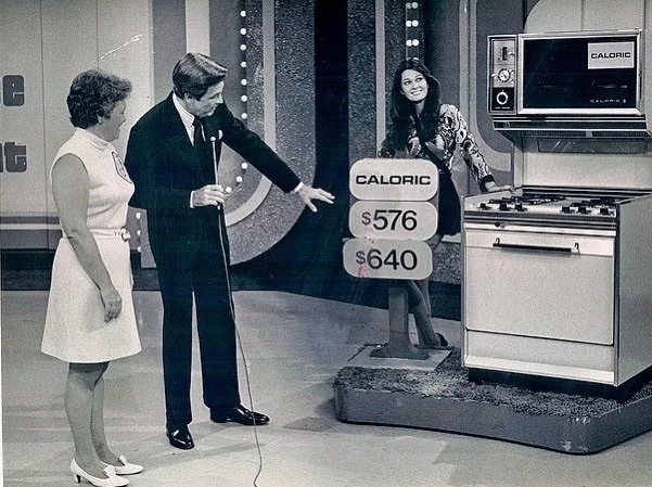 Gradually at first, but increasingly with age I understood that "new" nearly always came with strings and burdens that would sooner or later outweigh whatever initial benefit there might be to acquiring something new. Likewise, I realized that I'm never going to wind up on a game show - which is good because I am really not very good at winning anything. All in all it's highly unlikely that anyone is going to give me a NEW CAR!!! much less a harvest gold Caloric combination range and microwave oven.