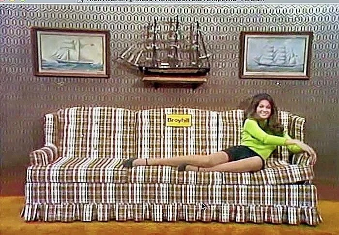 Ruthie passed on bidding for a Broyhill Upholstery Grouping (that's a thing I guess), that sat on top of Monsanto carpeting ("Good looks that will last for years!" Monsanto is quite renowned for making a number of products that last for years, potentially forever.), surrounded by Masonite photo-woodgrain paneling, and to "keep it looking beautiful, 24 cans of Panel Magic!" (from "Magic American Chemical Corporation").